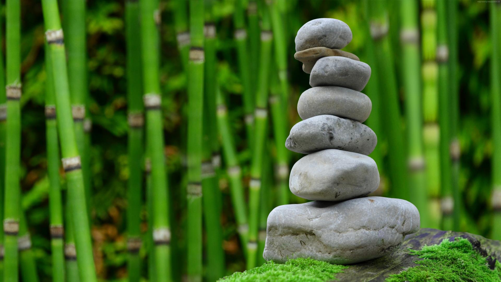 Wallpaper Gray stones on a background of green bamboo