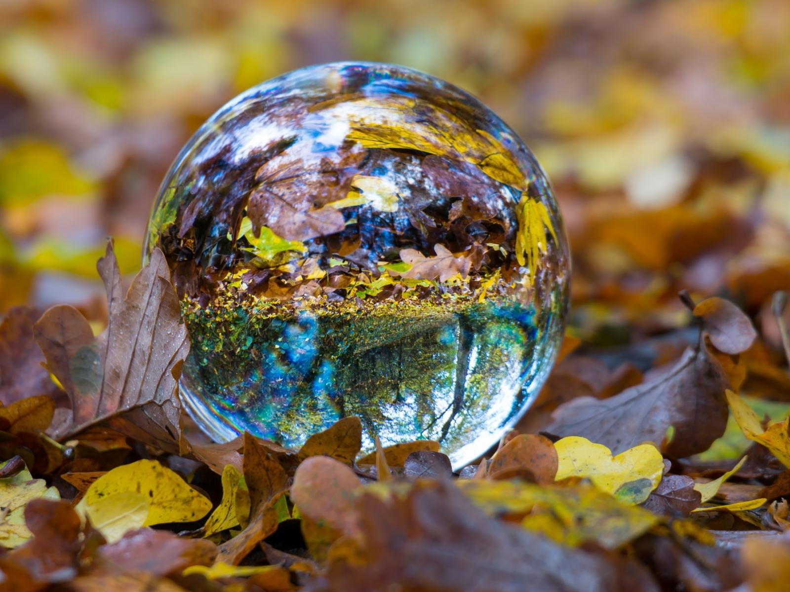 Wallpaper A glass bowl lies on a dry yellow grass in the fall
