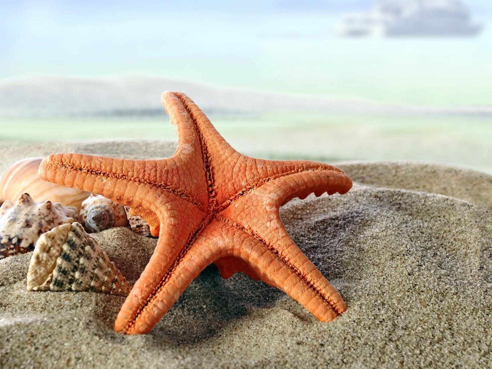 Wallpaper Beautiful starfish and seashells on sand