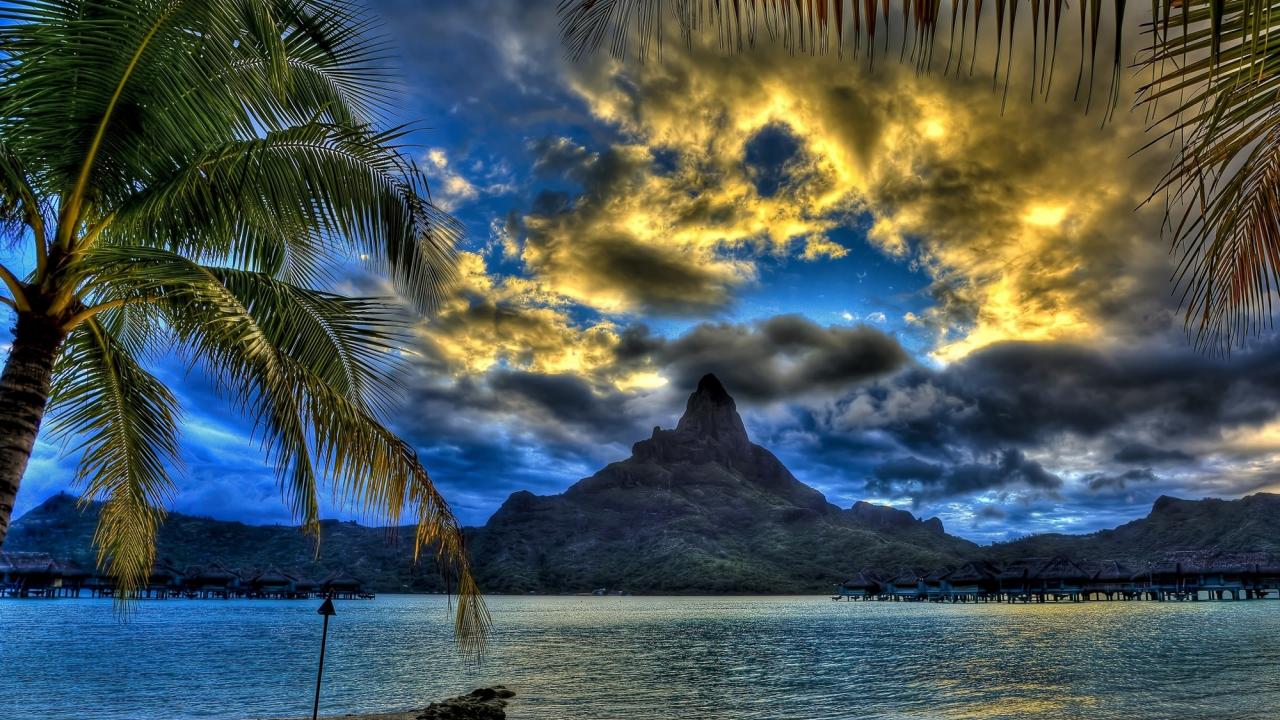 Wallpaper View of the top of a mountain under a beautiful sky on a tropical beach