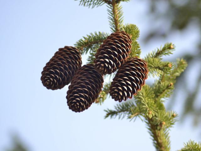 Wallpaper Four big bumps on a green spruce branch