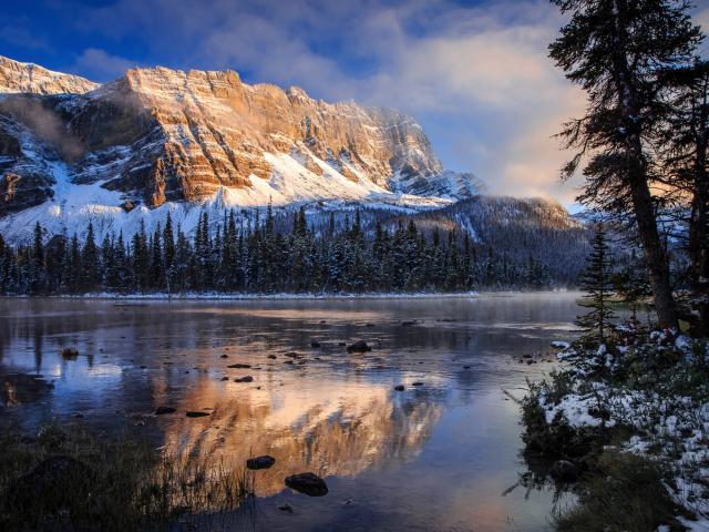 Wallpaper Snow-covered mountains near the frozen lake