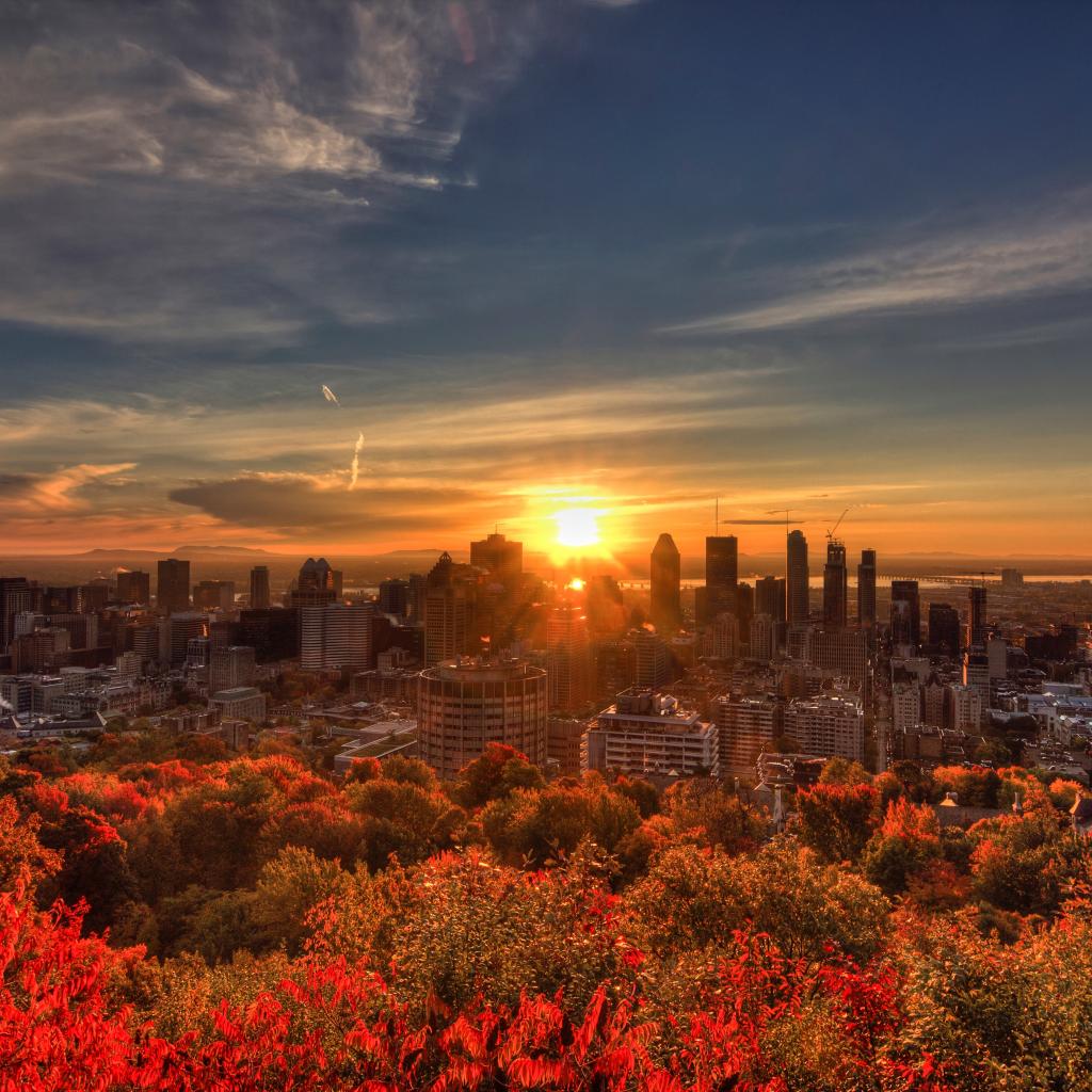 Wallpaper Sunrise over skyscrapers of Montreal, Canada