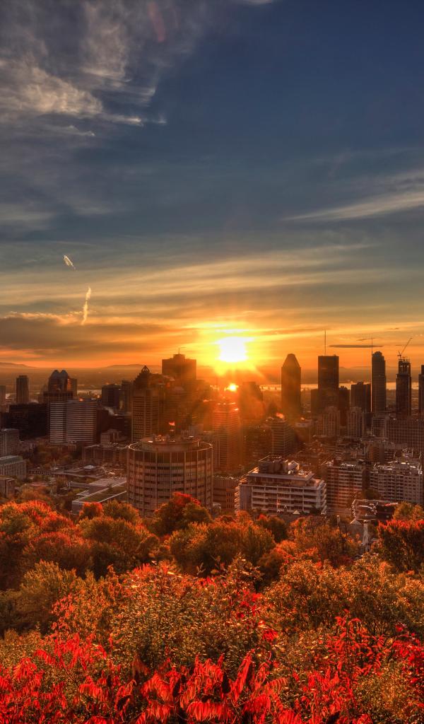 Wallpaper Sunrise over skyscrapers of Montreal, Canada