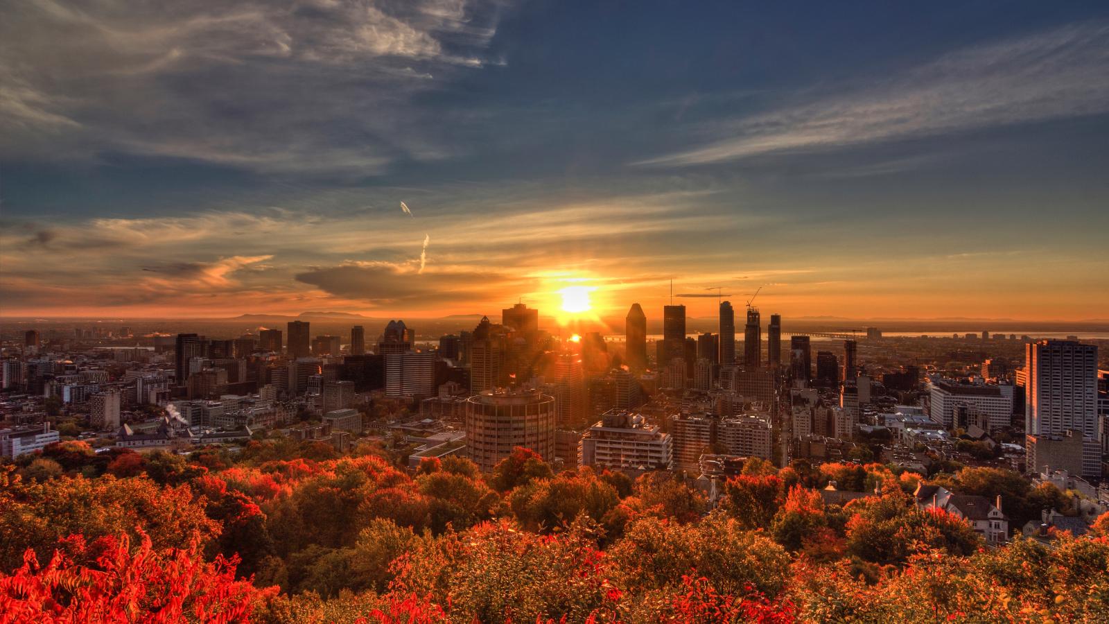 Wallpaper Sunrise over skyscrapers of Montreal, Canada