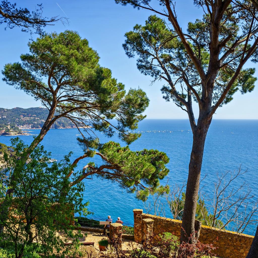 Wallpaper High trees on the coast against the sea, Spain