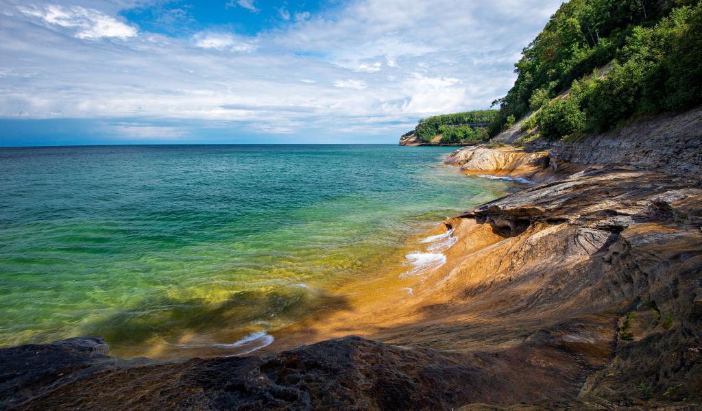 Wallpaper Rocky shore near the blue water of the sea against the sky
