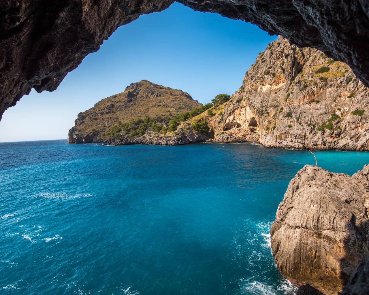 Wallpaper Rocks in the sea bay under the blue sky