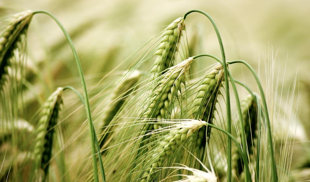 Wallpaper Green ears of wheat with daisies against a blue sky