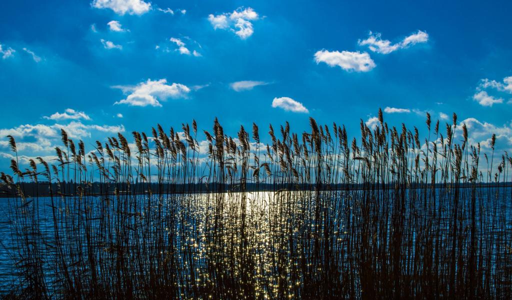 Wallpaper Reeds in a river under a beautiful blue sky
