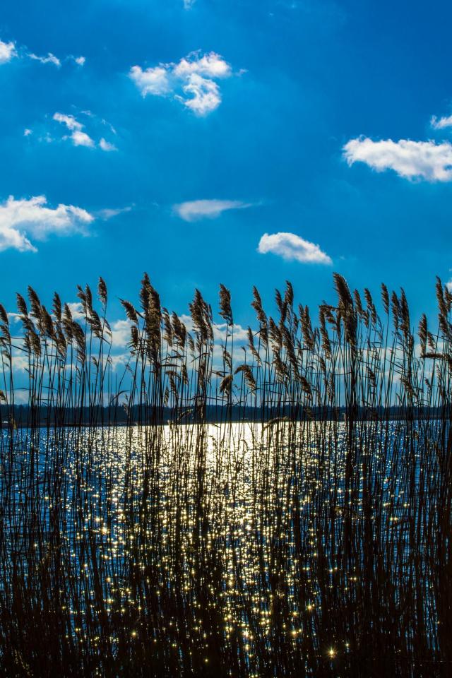 Wallpaper Reeds in a river under a beautiful blue sky