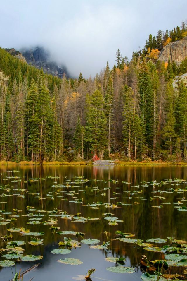 Wallpaper Lake against the backdrop of a pine forest at the foot of the mountains