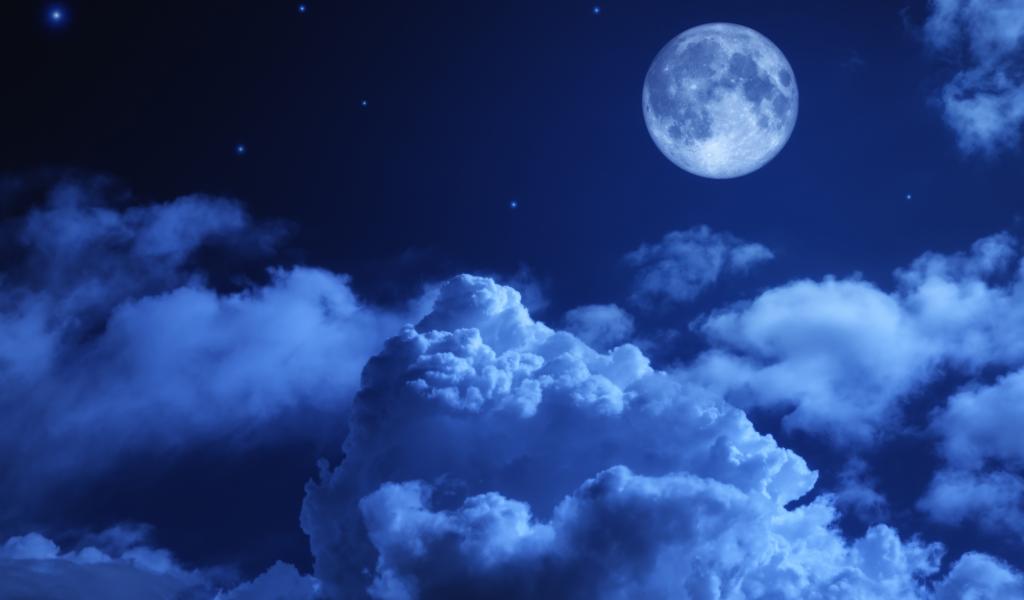 Wallpaper A big moon in the night sky with white clouds