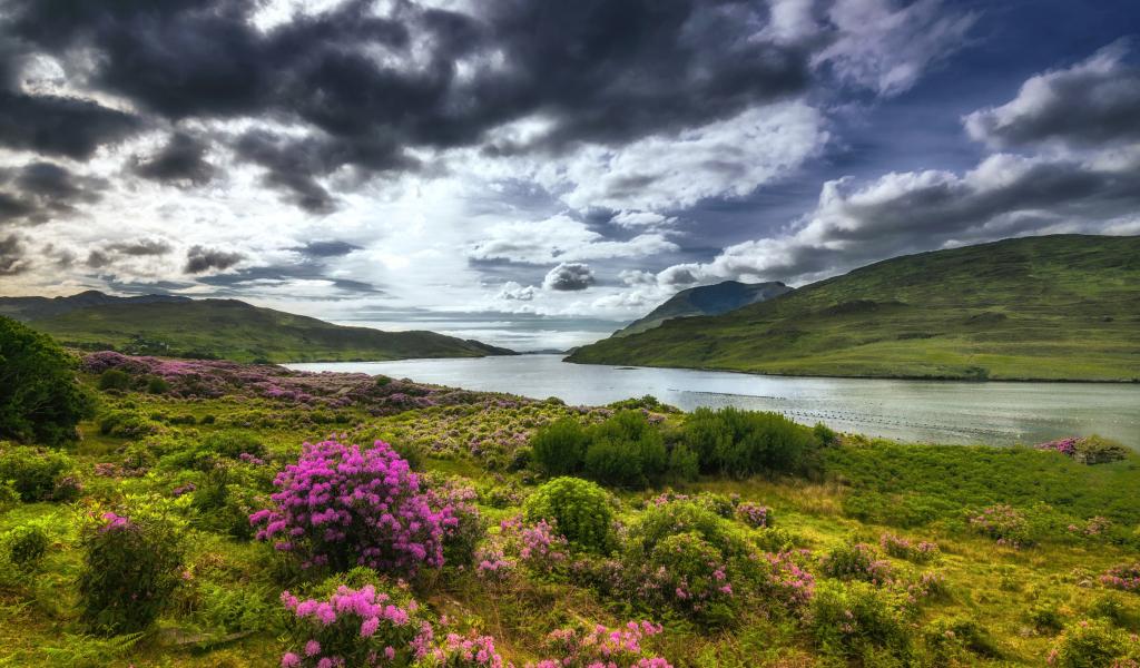 Wallpaper River with green shores under a beautiful sky, Ireland