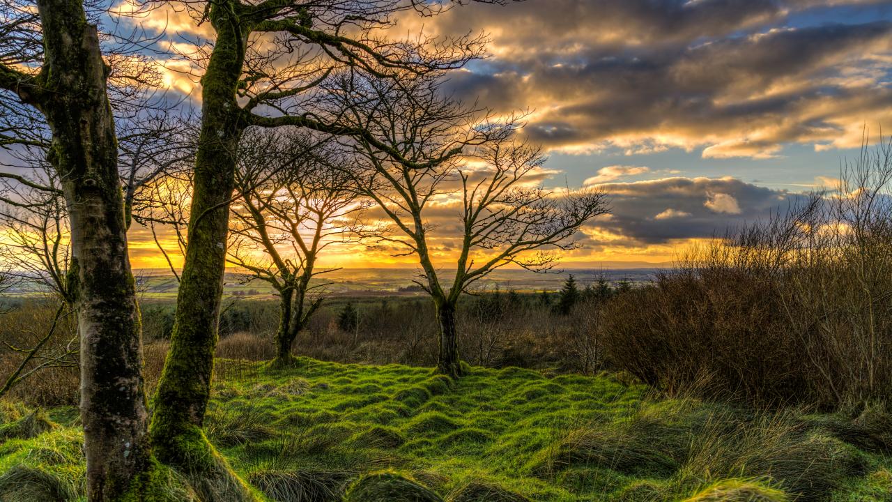 Wallpaper Moss covered trees at sunset