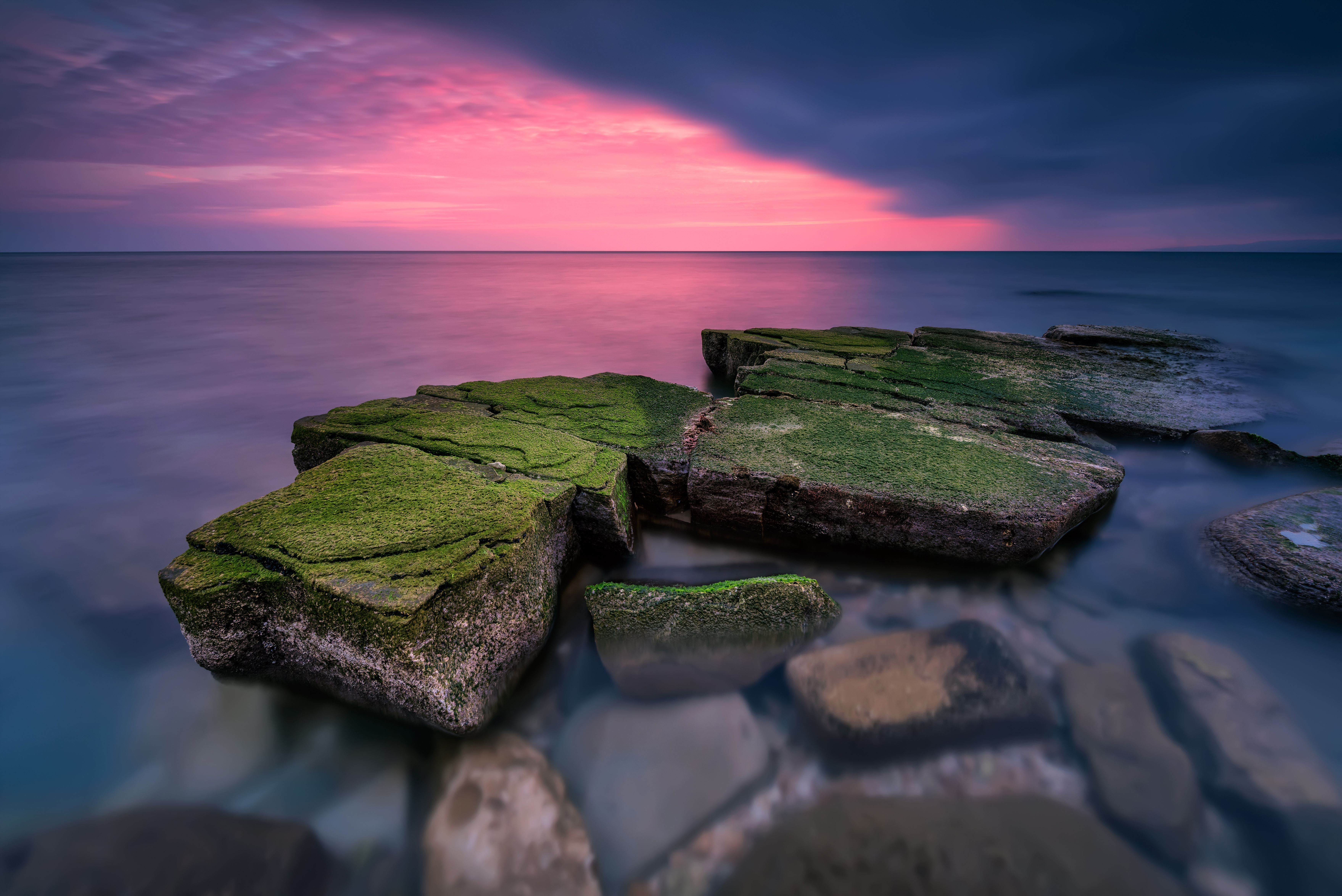 Wallpaper Stones covered with green moss in the water