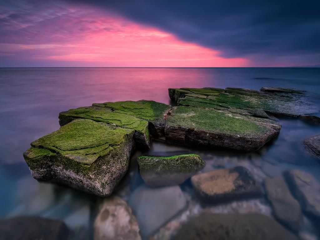 Wallpaper Stones covered with green moss in the water
