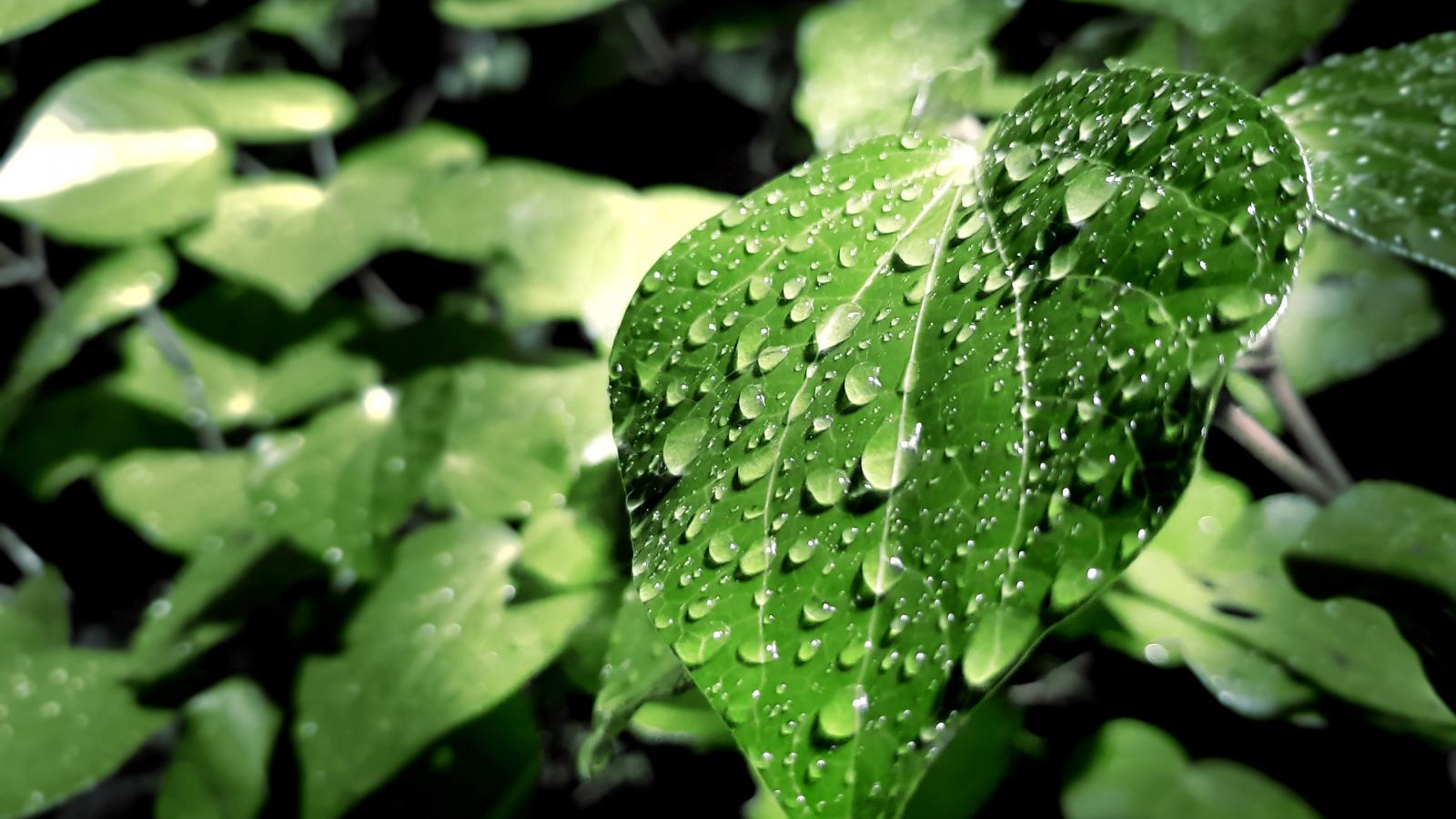 Wallpaper Rain drops on green leaves
