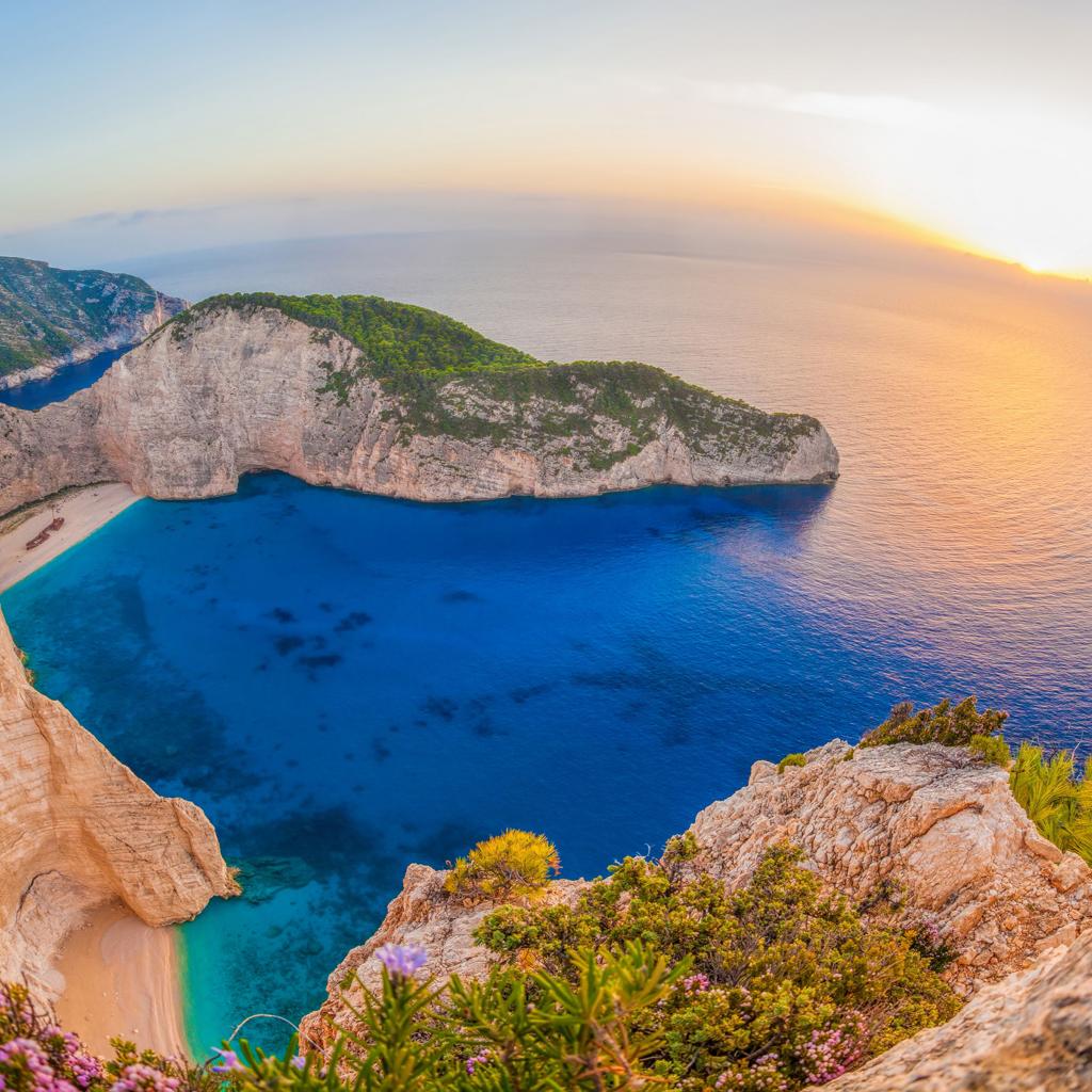 Wallpaper Navagio beach at sunset, Greece