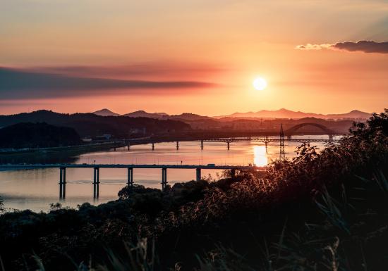 Wallpaper Dawn over the bridges over the river