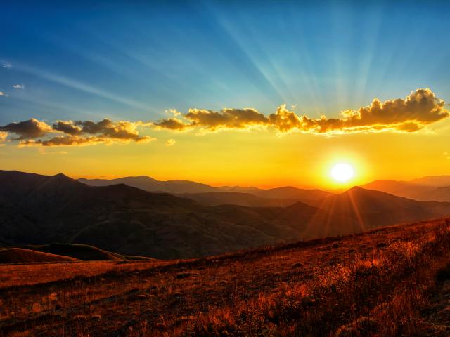 Wallpaper Beautiful dawn in the sky above the green hills