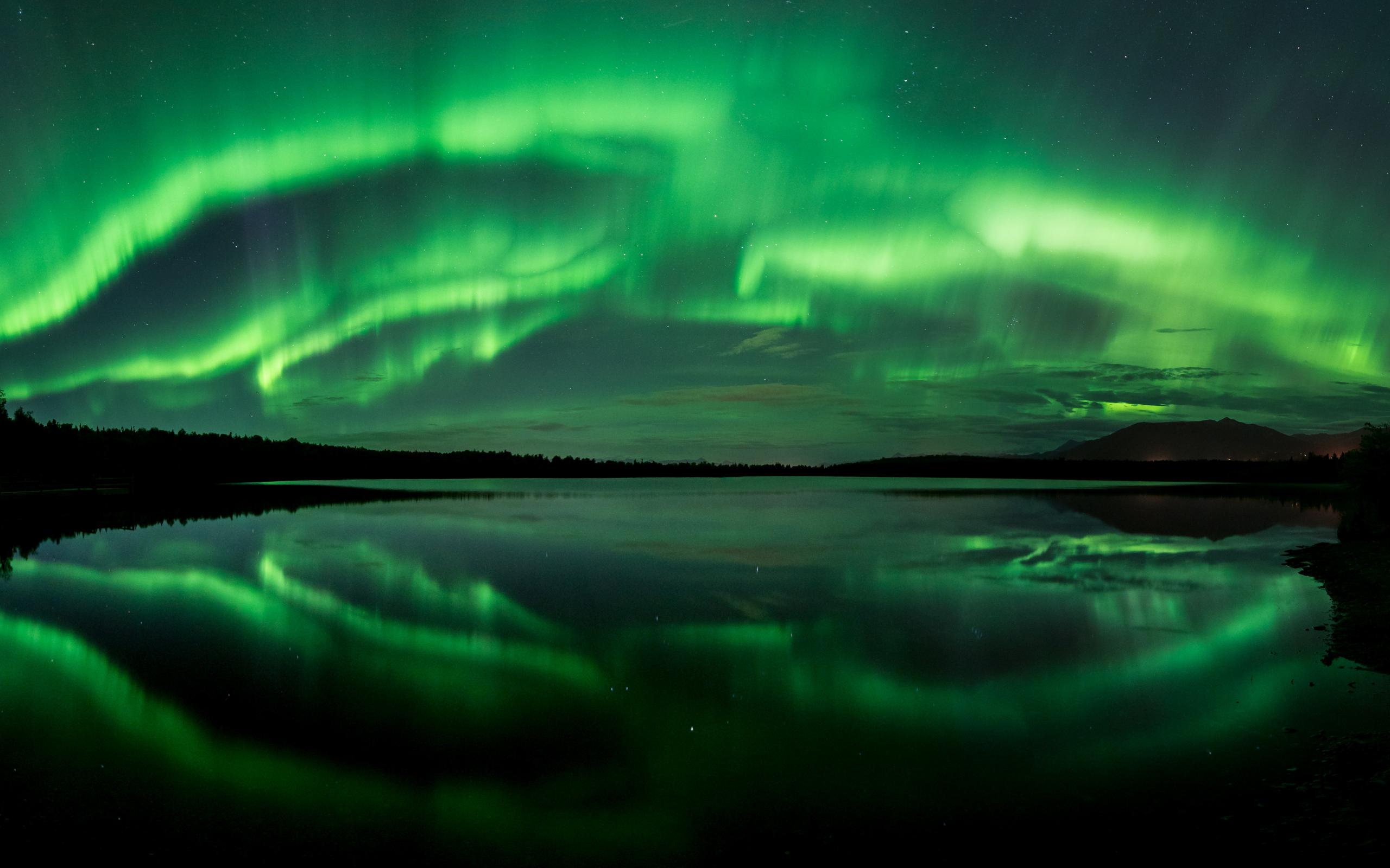 Wallpaper Northern lights above the water