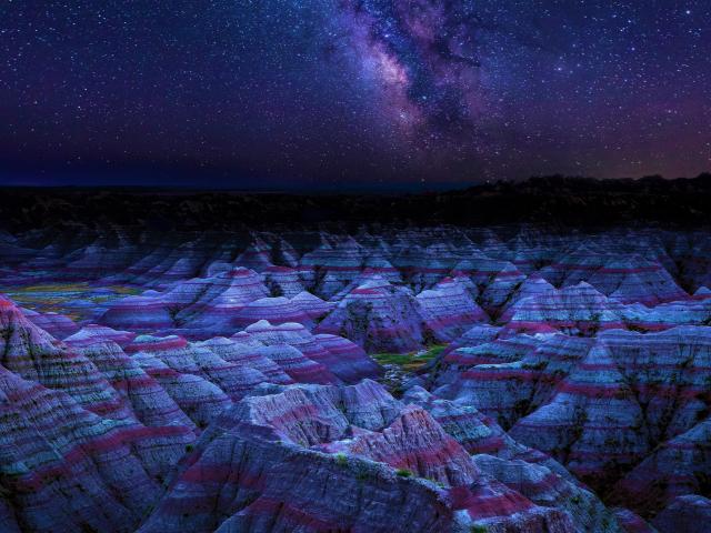 Wallpaper Milky Way over the rocks in the National Park of the Blacklands, USA