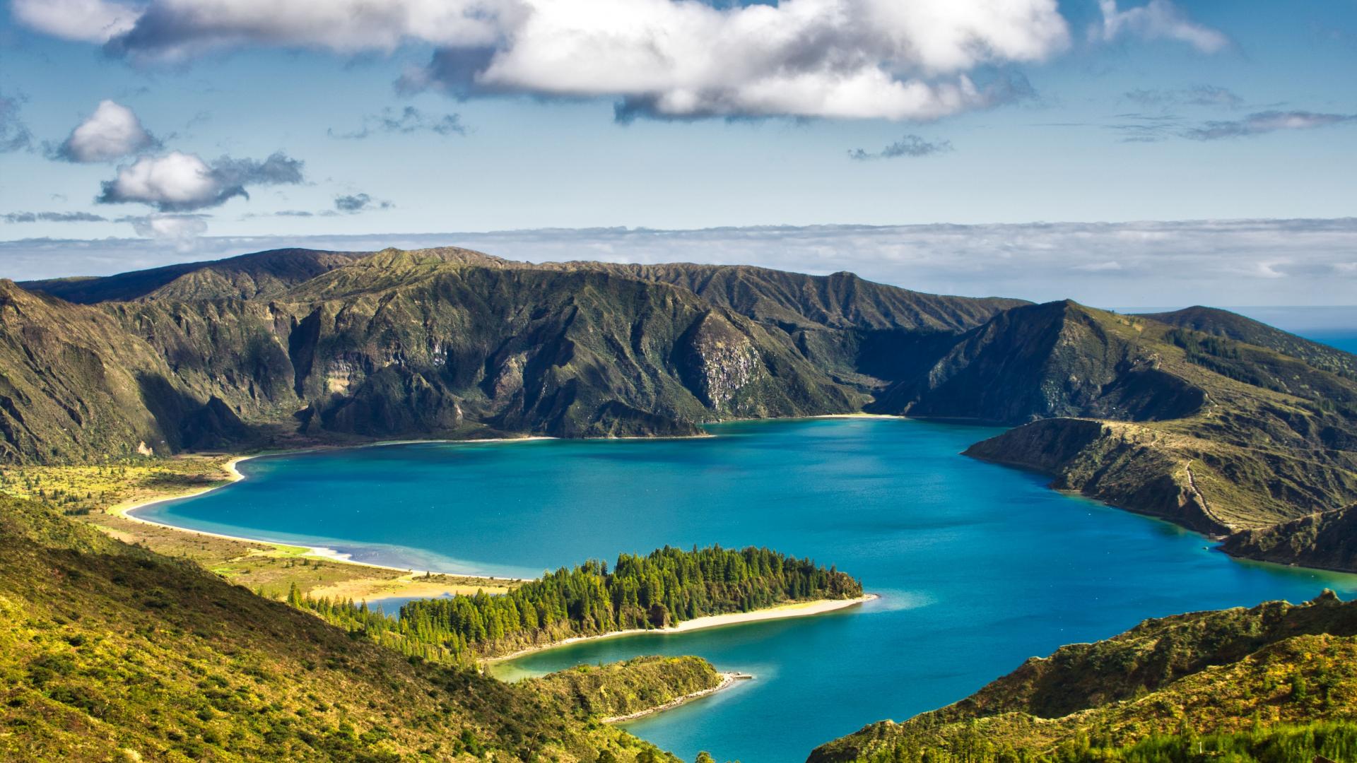 Wallpaper Beautiful view of a blue lake by the mountains