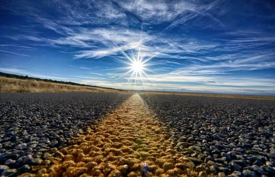 Wallpaper Bright sun in the blue sky above the track
