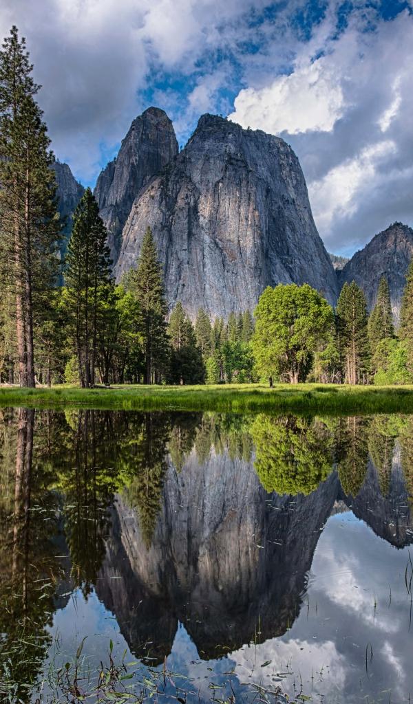 Wallpaper Stone rocks and forest are reflected in the water