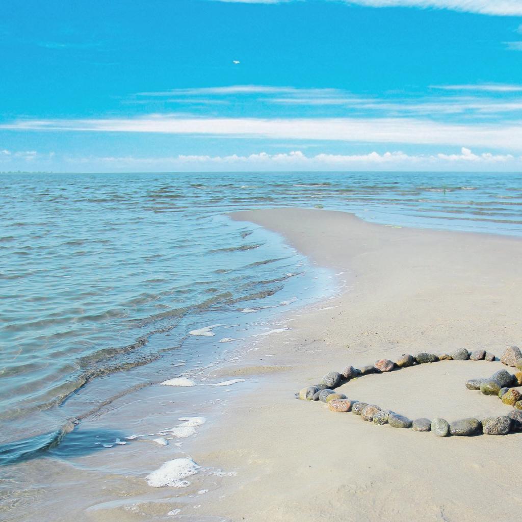 Wallpaper Heart of stones on the sand by the calm sea under the blue sky