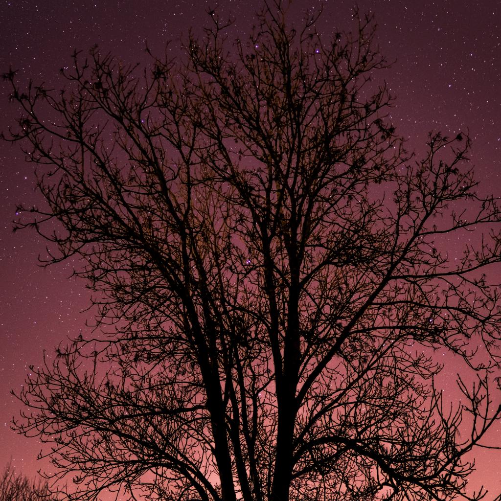 Wallpaper A tree without leaves against the starry sky