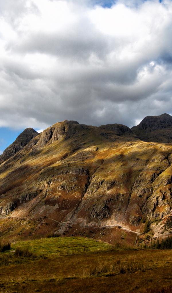 Wallpaper White fluffy clouds over the mountain