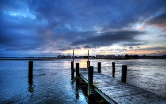 Wallpaper Wooden bridge on the river against the sky at dusk