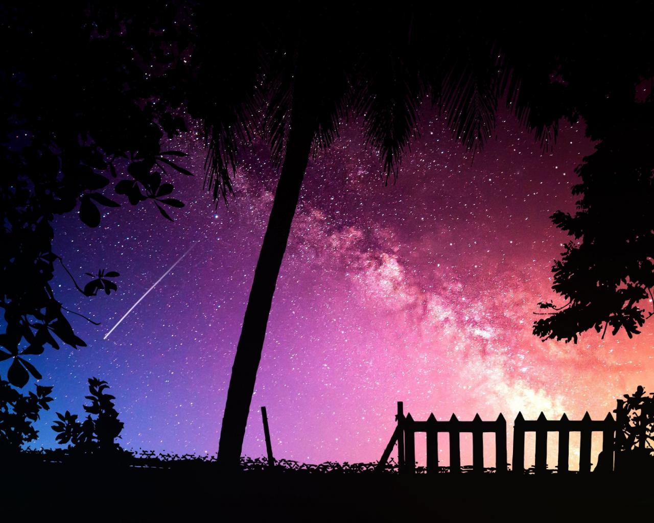 Wallpaper Silhouettes of trees against a starry sky