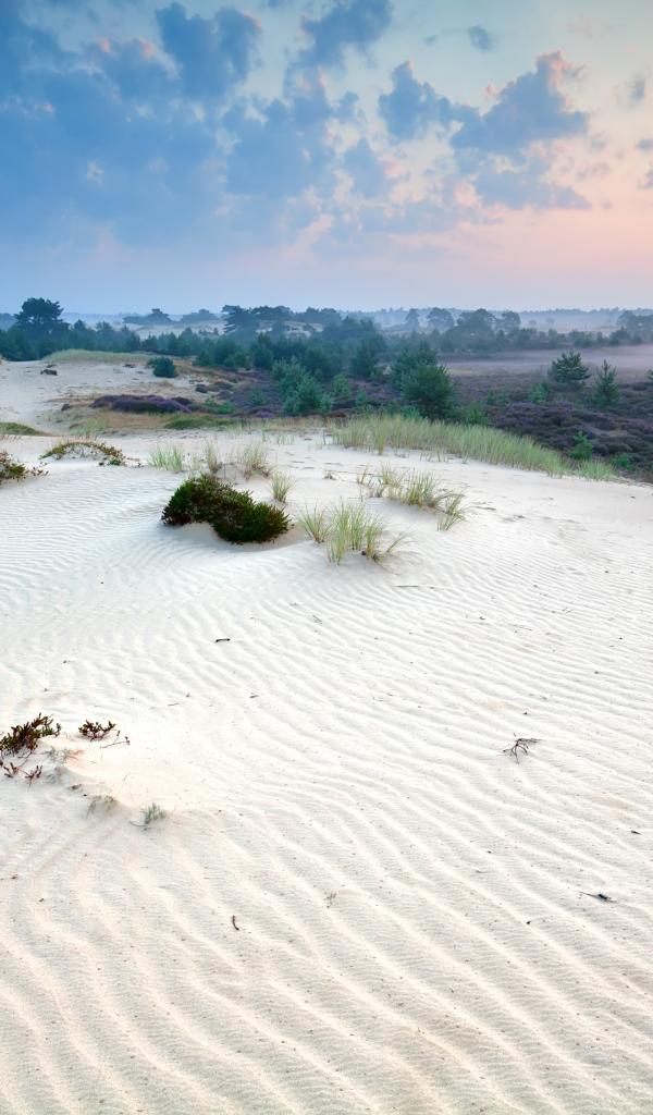 Wallpaper White sand in the grass on the shore under a beautiful sky at sunset