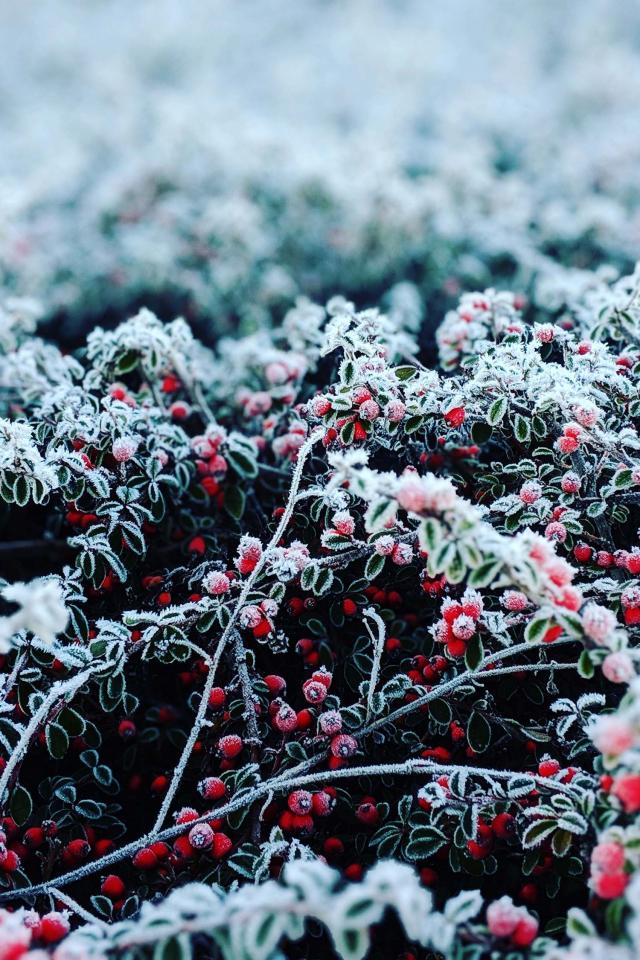 Wallpaper Red berries covered with hoarfrost