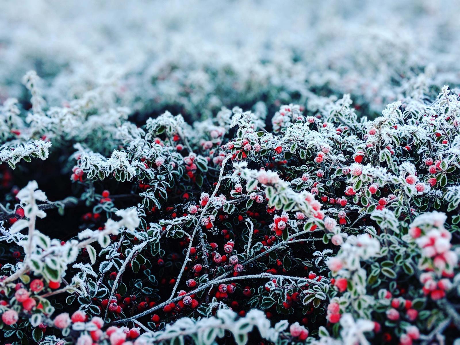 Wallpaper Red berries covered with hoarfrost