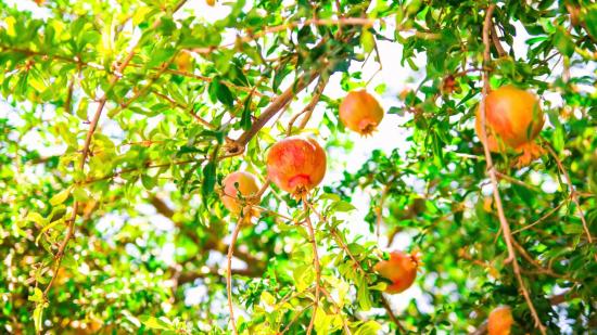 Wallpaper Red pomegranates on tree branches