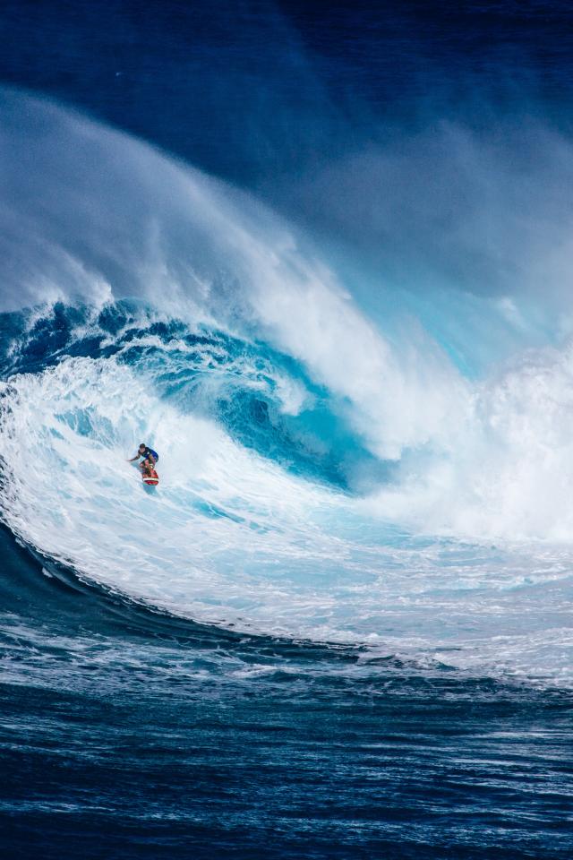 Wallpaper High blue wave with white surfboard
