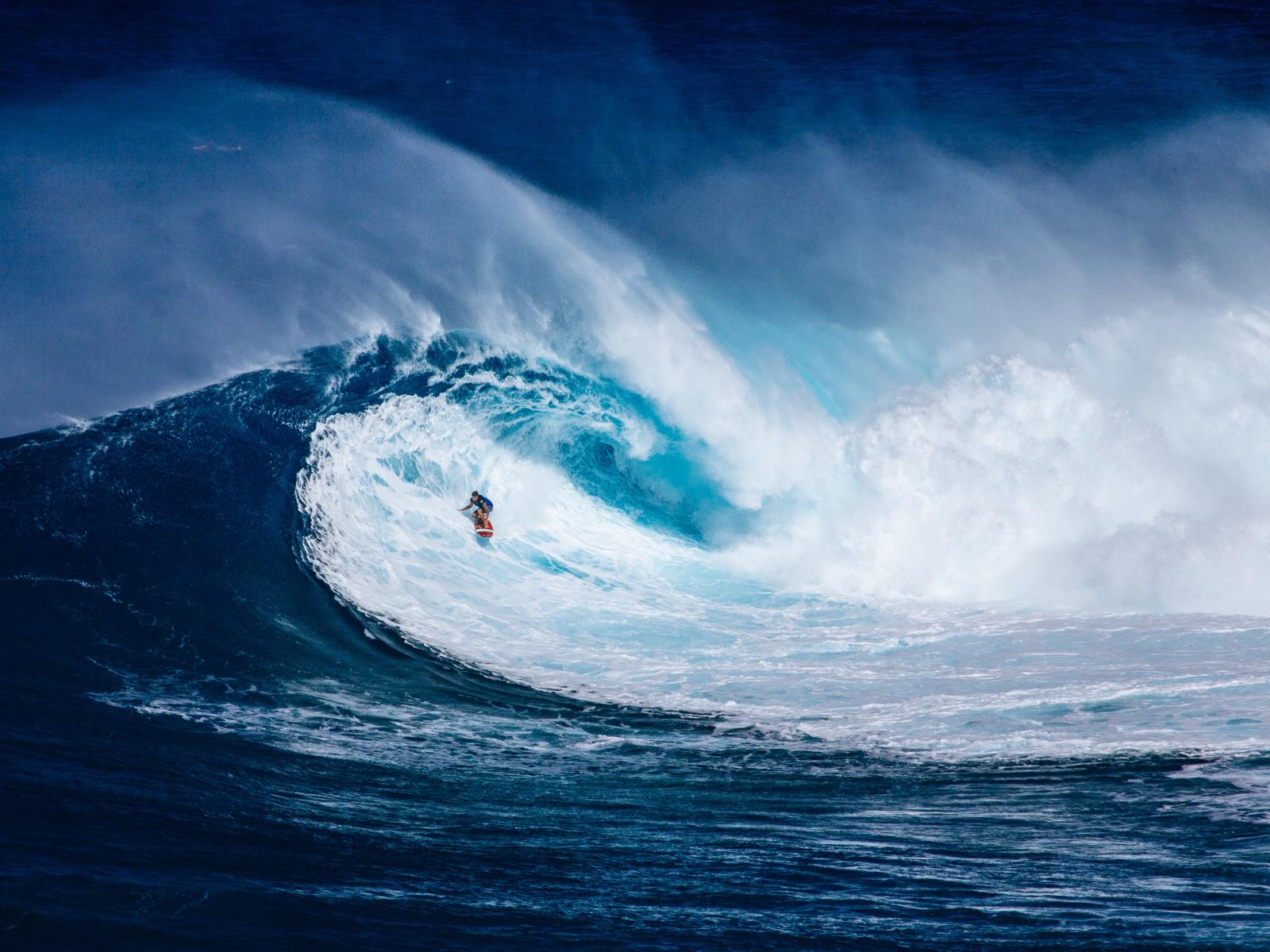 Wallpaper High blue wave with white surfboard