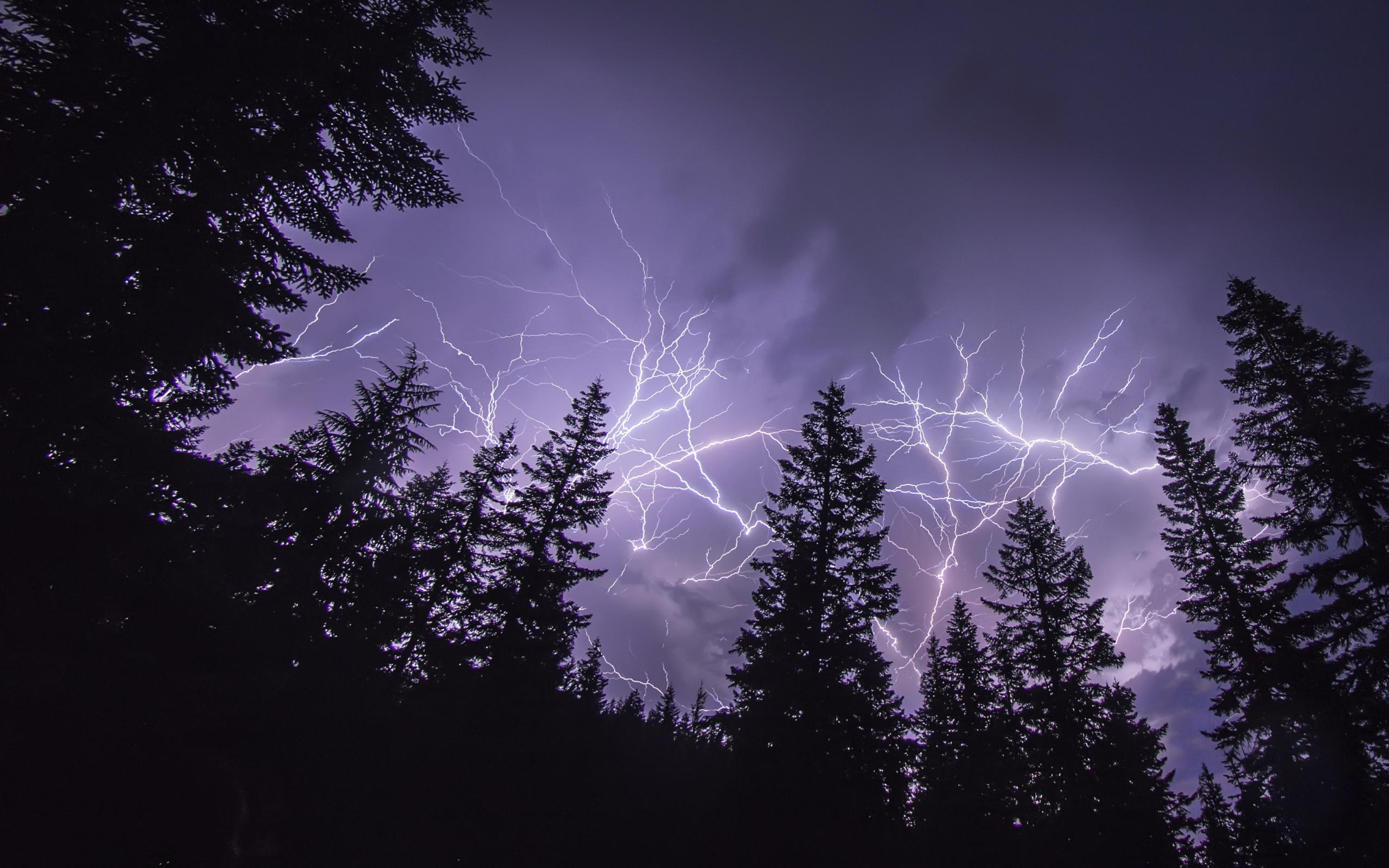 Wallpaper Bright lightning over a pine forest
