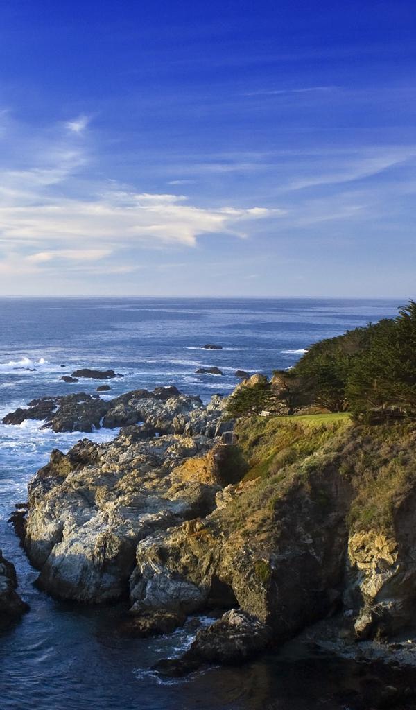 Wallpaper Stone coastline rocks in the ocean under blue sky