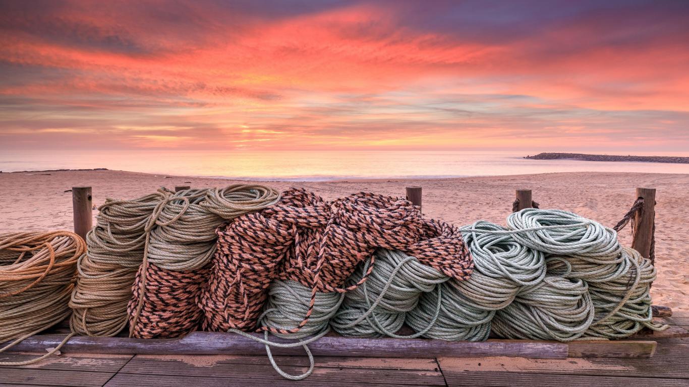 Wallpaper Ropes on a wooden bridge on a sunset background