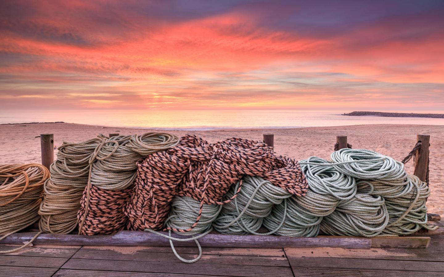Wallpaper Ropes on a wooden bridge on a sunset background