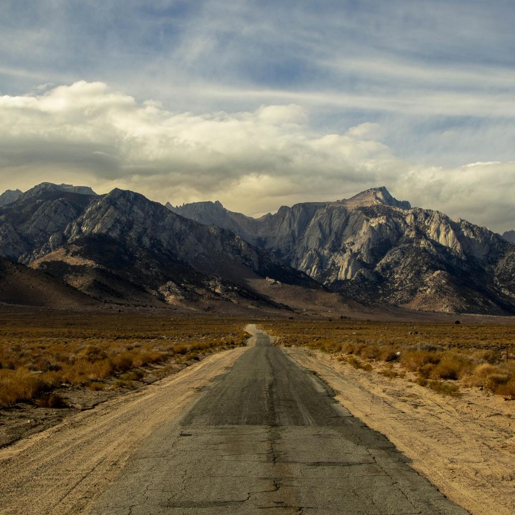 Wallpaper Long deserted road goes to the mountains