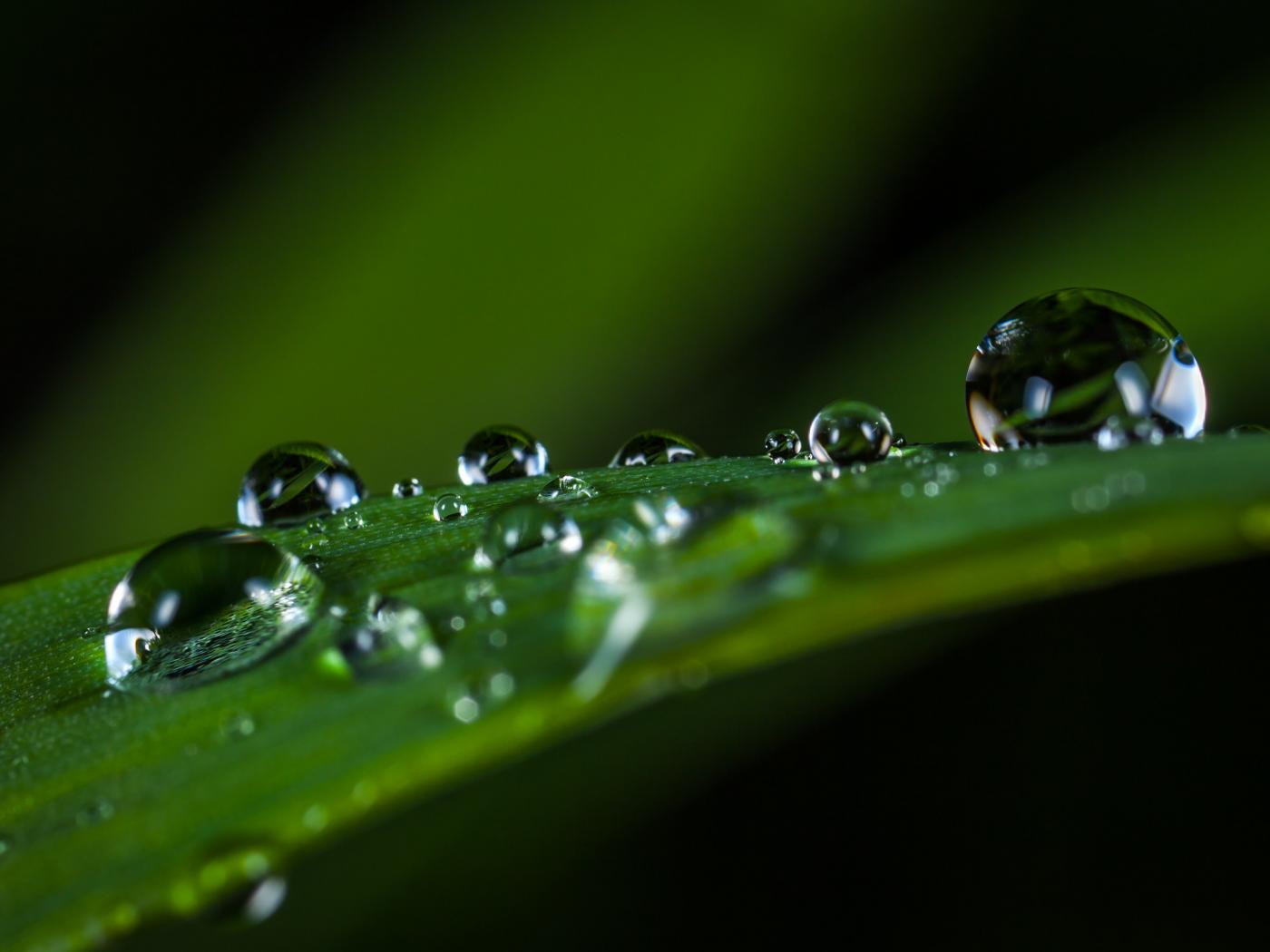 Wallpaper Big drops of dew on green grass