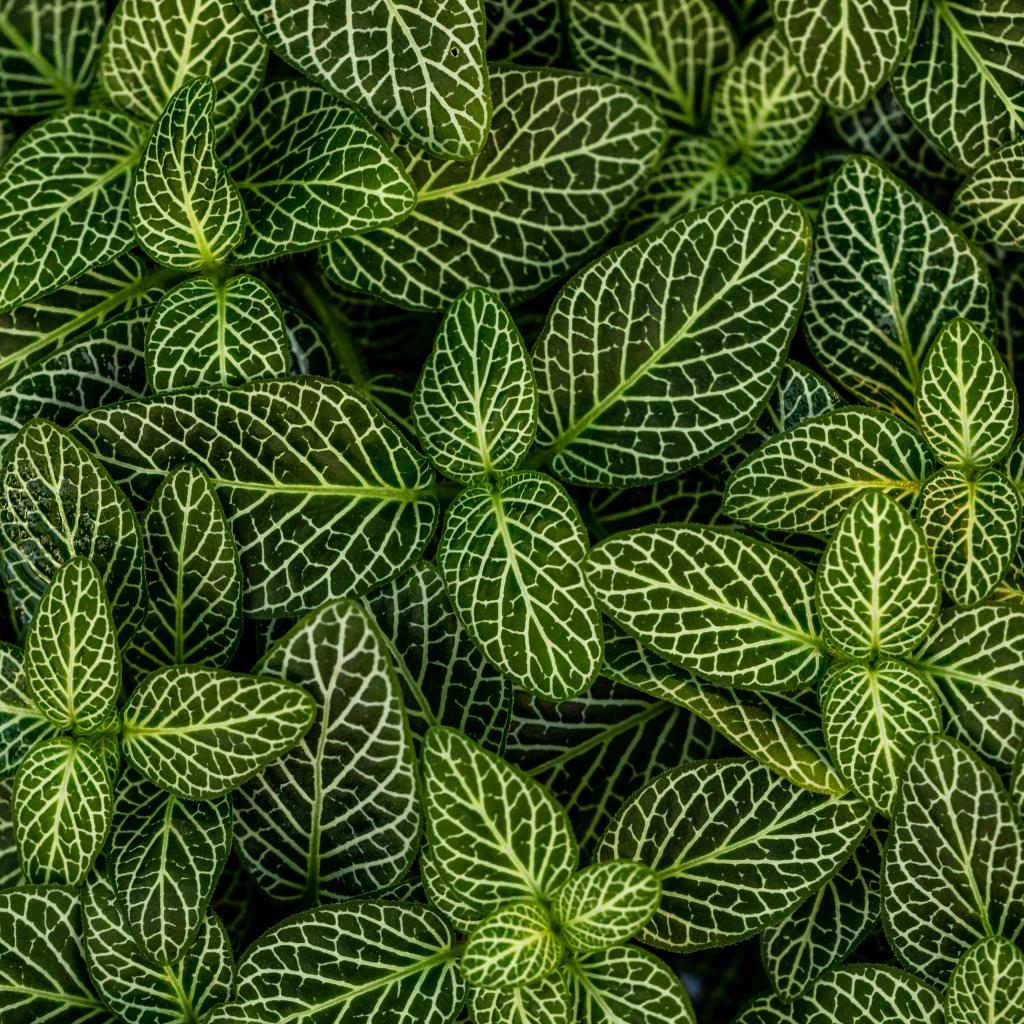 Wallpaper Many green leaves of a plant with white stripes