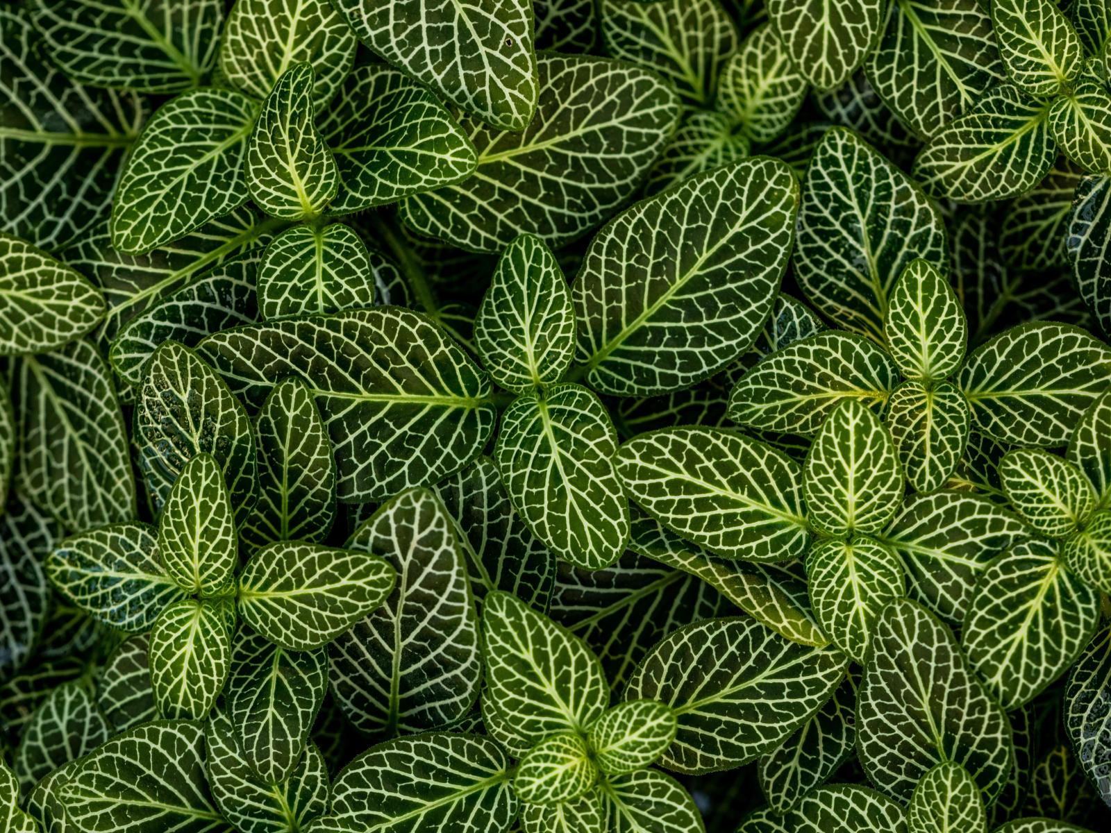 Wallpaper Many green leaves of a plant with white stripes