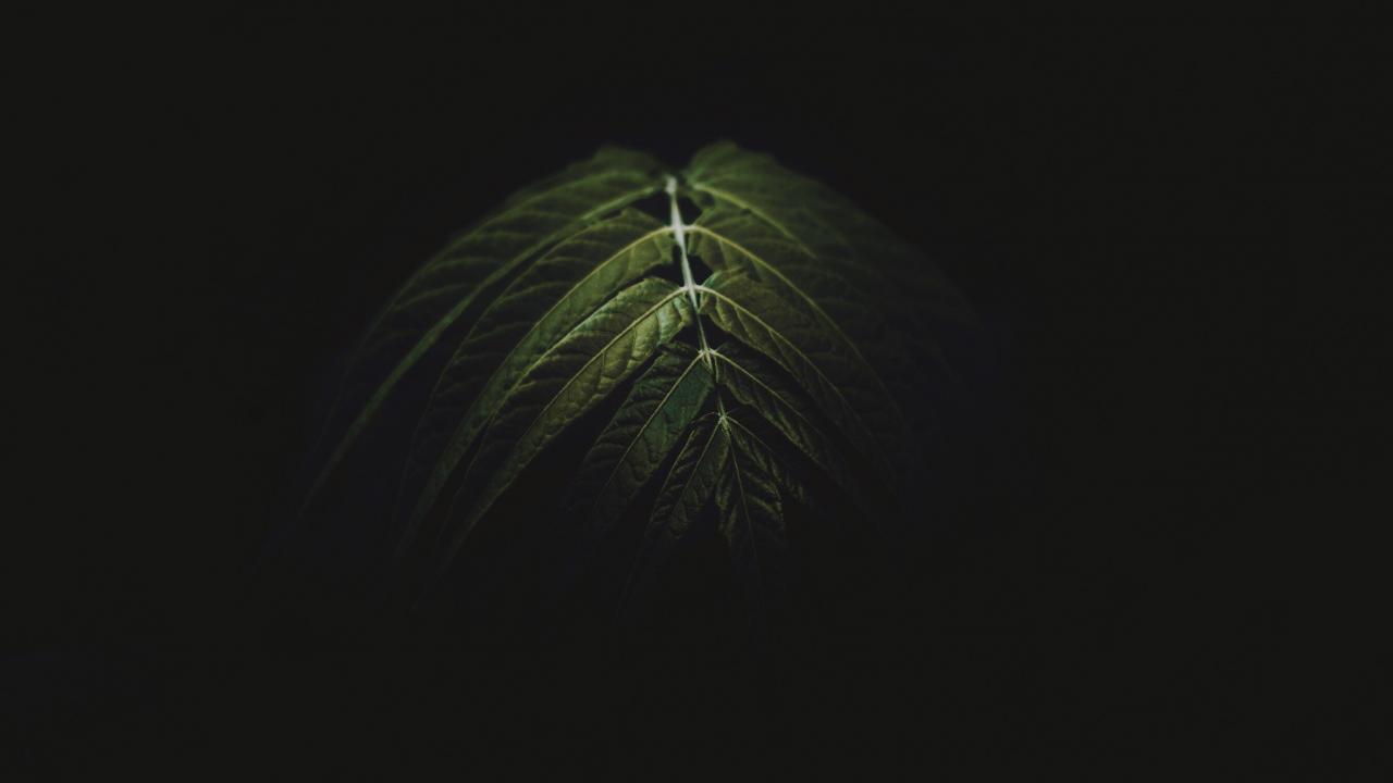 Wallpaper A beautiful black butterfly sits on a green raspberry leaf